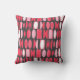 This throw pillow has an art deco design made of ovals and half ovals in white and shades of pink on a field of dark gray.
