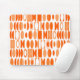 This mouse pad has an art deco design made of ovals and half ovals in white and shades of orange.