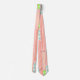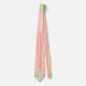 This tie has a design made of long ovals filled with circles, diamond shapes, or lines in pink, coral, green, and blue.