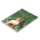 This collage shows a beautiful French woman blowing bubbles amid scrolls and script writing. The Art Deco style is so romantic. The Eiffel tower in the background adds to the French theme of the art deco image. The main colour is green.