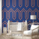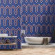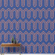 Art Deco Pattern 05 - Orange on Prussian Blue Wallpaper