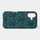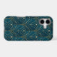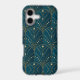 Art Deco pattern with gold geometric shapes on a deep teal background, featuring arch motifs and dotted accents, creating an elegant vintage feel.