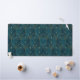 Art Deco pattern with gold geometric shapes on a deep teal background, featuring arch motifs and dotted accents, creating an elegant vintage feel.