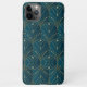 Art Deco pattern with gold geometric shapes on a deep teal background, featuring arch motifs and dotted accents, creating an elegant vintage feel.