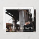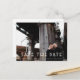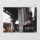 Vintage retro "Save the Date" on the front with full bleed photo, details on the back. Square photo and askew border featured.