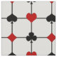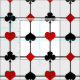 This fabric features an Art Deco inspired original design w/a card playing theme composed of bright red & black card suit symbols (diamond, club, heart & spade) centred where the black thick & thin horizontal & vertical lines of a grid meet, w/a large custom text field for your monogram in the centre.