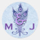 Art Deco Purple Peacock Feathers Monogram Wedding Classic Round Sticker