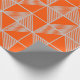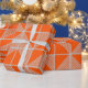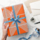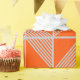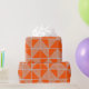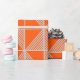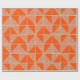 This wrapping paper has an art deco design of squares divided in half by diagonal lines of silver. The squares are then pieced together on a field of orange.