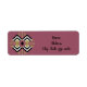 These return address labels have an art deco quilt-inspired design of diamond shapes in black, white, and tan on a field of mauve.