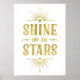 This glamorous Art Deco-style typography poster features the inspiring message "Shine like the stars" written in bold, vintage lettering with a faux gold foil look, and framed by chic, shining light rays.