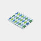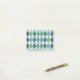 These Post-It notes have an art deco design of diamond shapes made from overlapping angles in black lines coloured in shades of blue and green with diagonal black lines making the design look like argyle