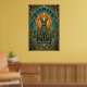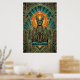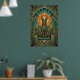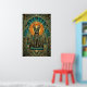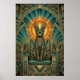 This royal art deco black cat sits enthroned with geometric collar and golden triple arches framing a dramatic orange sunburst halo. The teal marble details and opulent 1920s composition create unmatched luxury for living rooms, entryways and sophisticated spaces where cat lovers demand the finest statement wall art.