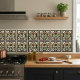 Step back in time with this stunning Art Deco-inspired ceramic tile, featuring a stylized red rose at its heart. The intricate design boasts a rich palette of deep blues, lush greens, and gleaming gold accents against a crisp white background, creating a captivating visual. This exquisite tile captures the essence of the Art Deco movement, characterized by its geometric patterns and floral motifs, making it a perfect statement piece for any space. Elevate your home decor with this elegant and timeless work of art, adding a touch of vintage sophistication and charm to your walls or backsplash. Its detailed craftsmanship and vibrant colors are sure to impress and become a conversation starter.