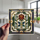 Art Deco Rose Red Blue Green Gold Floral Art Tile