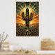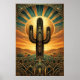 Art Deco Saguaro Cactus Sunburst Desert Gold Teal Poster