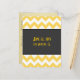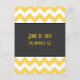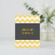 This simple art deco styled save the date postcard features a yellow and creme chevron pattern with a dark grey background. It simply features the date and city/state on the front of the card with a vintage postcard back.