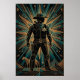 Bring the spirit of the Old West into the modern era with this "Modern Lawman" Art Deco poster. Featuring a bold sheriff silhouette standing tall against an explosive geometric starburst, this artwork perfectly captures frontier justice through a sophisticated lens. The design is meticulously detailed with angular lines, a prominent sheriff star badge, and a holstered revolver, all rendered in a premium palette of deep teal, midnight black, and weathered bronze.