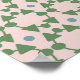 Mid century design pattern art poster available as download. Blush pink background with a geometric pattern print in sage green and a matt blue.