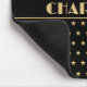 Add a touch of Art Deco style with this personalised mousepad! A star filled pattern paired with retro typography. Customise the template with a name, business name, or website. A stylish gift for friends and family! Printed colours: black and gold.