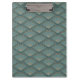 Abstract geometric wavy pattern in Art Deco style on with teal blue and copper coloured waves and fan decoration on dark teal blue colour background.
