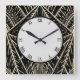 Art Deco Style Sketch in Black and Gold Square Wall Clock