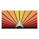 An iconic pattern of the sun rising from behind a stylized art deco shaped building. A simple yet elegant design, true to the era.
