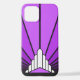 An iconic pattern of the sun rising from behind a stylized art deco shaped building. A simple yet elegant design, true to the era.