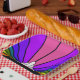 A classic art deco style sun pattern in rainbow.