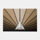 An iconic pattern of the sun rising from behind a stylized art deco shaped building. A simple yet elegant design, true to the era.