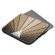An iconic pattern of the sun rising from behind a stylized art deco shaped building. A simple yet elegant design, true to the era.