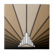 An iconic pattern of the sun rising from behind a stylized art deco shaped building. A simple yet elegant design, true to the era.