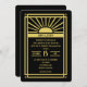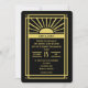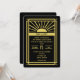 This vintage Art Deco sunburst wedding invitation features a golden sunburst at the top with your names right below the sun on a golden strip. Golden details surround the invitation details to make a great invite to a wedding with a roaring 20s wedding theme. Copyright henishouseofpaper