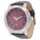 This men's watch has an art deco design of semi-circles and lines that look like a sunrise in gold on a field of eggplant. Want different colours? Message me.