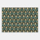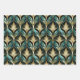 Art Deco Teal & Gold Fan Pattern Wrapping Paper