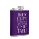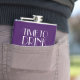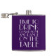 This is a fun and flirty flask that says, "Time to Drink Champagne and Dance on the Table" in an art deco style type, on a fun purple background, making it a perfect 21st birthday gift, holiday gift, bridesmaid gift or bachelorette gift.