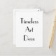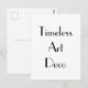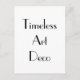 Art Deco style typography postcard featuring the slogan 'Timeless Art Deco'. Easily personalise the message by editing the template text. On trend stylish black on white postcard. Make a style statement. Easily transfer this Art Deco message to another product of your choice. Thanks for viewing my designs!