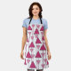 This apron has an art deco design of triangles strung on lines in two shades of pink.