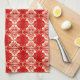 A vintage, Art Deco wallpaper / tiled pattern - deep, true red, white and shades of coral, with a solid red background
