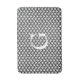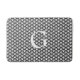 An Art Deco pattern bath mat based on the traditional wave pattern often seen in Japanese textiles, in black, white and grey, with monogram