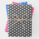 Wrapping paper in an Art Deco pattern based on a traditional wave pattern, often seen in Japanese textiles, with a digitally enhanced, raised, enamel effect: black, white and grey, shades of fuchsia pink, and shades of cobalt and sky blue