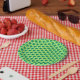 An Art Deco pattern based on the traditional wave pattern often seen in Japanese textiles, in the colours of jade, ranging from pale celery green to deep blue-green