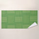 This towel set has an art deco design that looks like a weave in two shades of green on a field of green.