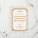 These save the dates feature a white and gold colour palette, a geometric frame, geometric patterns, and other stylistic details all inspired by Art Deco and the roaring twenties. You can customise the sample text fields to your liking.