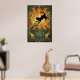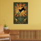A mystical black cat silhouette spreads golden geometric wings above a teal marble pedestal, surrounded by orange radiating light rays. This luxurious mythical 1920s art deco design combines elegance and fantasy, creating a captivating statement piece for creative spaces, galleries and cat lovers who appreciate sophisticated, imaginative wall art.