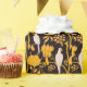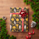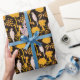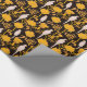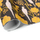 ART DECO YELLOW FLOWERS,WHITE PARROTS ON BLACK WRAPPING PAPER