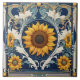 Art Deco Yellow Sunflowers Art Nouveau Blue Tile