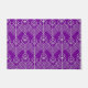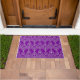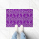 This doormat has an art deco design of diamond shapes and lines in silver on a field of purple.