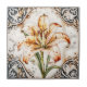 The centerpiece of each tile features a resplendent lily motif, rendered with meticulous attention to detail. The lilies, known for their symbolism of purity and renewal, are depicted in full bloom, their petals gracefully curving and intertwining with one another. The organic lines of the lily contrast perfectly with the geometric shapes surrounding it, creating a visually striking and balanced composition.