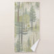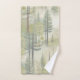 A delightful fantasy art illustration in a modern style depicts various tall, light, medium, and dark green pine trees, with a creamy background