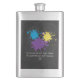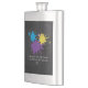 The product is a good size and came exactly as it was pictured. The lid is not attached to the flask, which could be dangerous on drunken nights... The print came out surprisingly well and looks very sharp. Would definitely recommend.